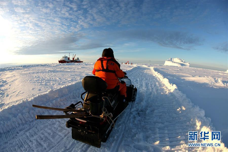 冰上運(yùn)輸之路最后一公里修通,修路小組成員返回“雪龍”號(hào)(12月1日攝)。 搭載中國(guó)第35次南極科考隊(duì)的“雪龍”號(hào)極地考察船日前到達(dá)距離中山站44公里處的陸緣冰區(qū),準(zhǔn)備迎來本次南極科考首場(chǎng)攻堅(jiān)戰(zhàn)——物資卸運(yùn)。一支探冰小組隨即展開海冰探路,以期盡快打通從“雪龍”號(hào)到中山站的冰上運(yùn)輸線,盡早啟動(dòng)冰上運(yùn)貨。 新華社記者 劉詩平 攝