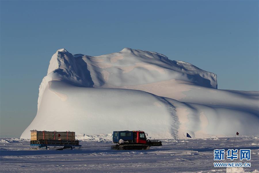 雪地車隊(duì)拉著物資從“雪龍”號(hào)駛向中山站(12月2日攝)。 新華社記者 劉詩平攝