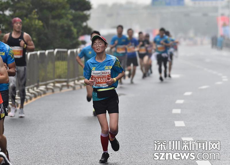2018年12月16日,深圳國(guó)際馬拉松位于后海的折返點(diǎn),一名選手正在向終點(diǎn)沖刺。