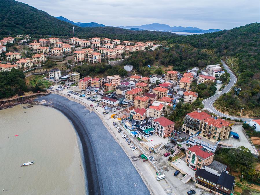 空中俯瞰朱家尖烏石塘的臨海民宿(12月15日無(wú)人機(jī)拍攝)。新華社記者 徐昱 攝