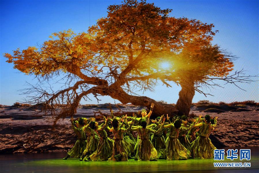 12月18日,在蘭州音樂廳,西北民族大學(xué)演員表演舞蹈《胡楊贊》。 新華社記者范培珅攝