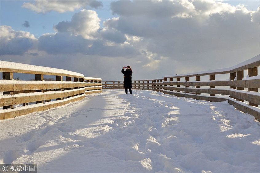 2018年12月7日,山東煙臺,雪后的海濱景色。