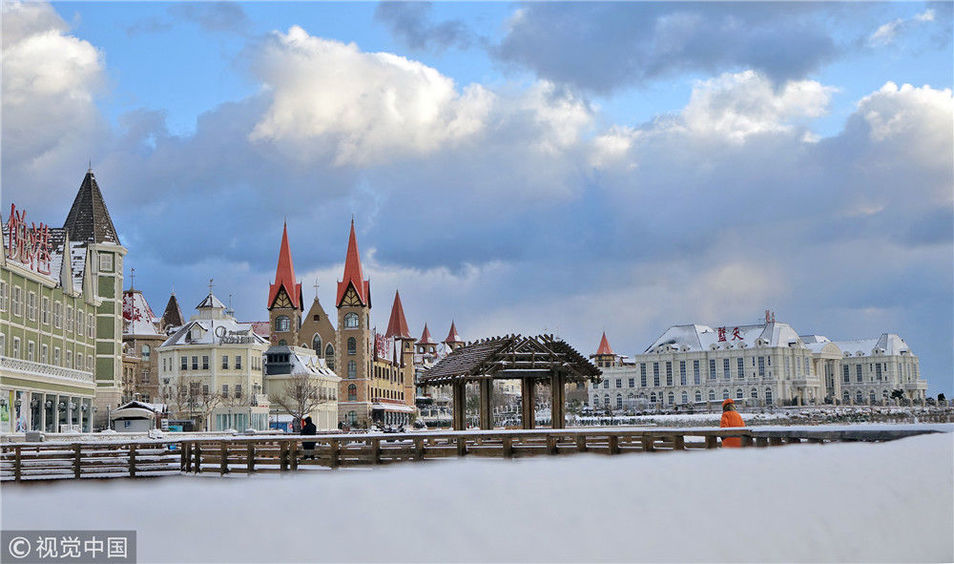 2018年12月7日,山東煙臺(tái),雪后的海濱景色。