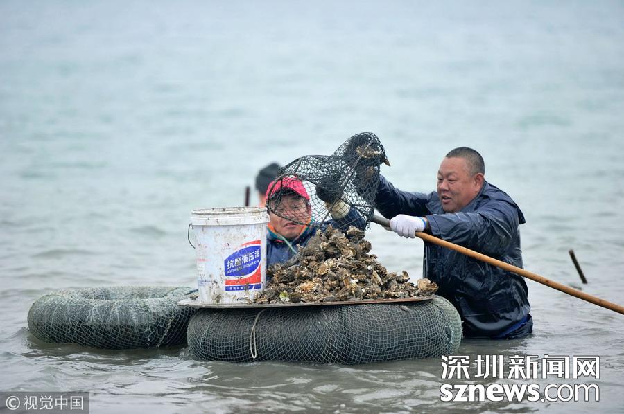 深圳新聞網(wǎng)2018年12月25日訊 二十四節(jié)氣冬至適逢天文大潮,西海岸新區(qū)唐島灣南岸,來自附近十余公里甚至青島市區(qū)的市民來到退潮后的灣底,在齊腰深的海水中挖拾牡蠣(海蠣子)或在沙灘上挖拾蛤蜊。經(jīng)過近2個(gè)多小時(shí)的辛勤勞作,市民們收獲滿滿返回。