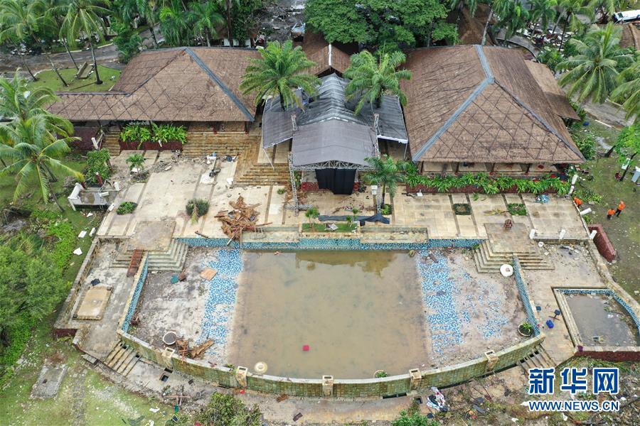 這是12月25日航拍的遭海嘯襲擊后的印度尼西亞萬丹省丹戎勒松度假村。印度尼西亞抗災(zāi)署25日通報(bào)說,印尼西部巽他海峽22日晚發(fā)生的海嘯已造成429人遇難,另有超過1.6萬人撤離。搜救工作正在緊張進(jìn)行。新華社記者 杜宇 攝