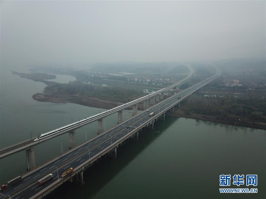 杭黃高鐵正式通車 12月25日,D9551次首發(fā)列車駛過(guò)富春江特大橋(無(wú)人機(jī)拍攝)。 新華社記者 邢廣利 攝