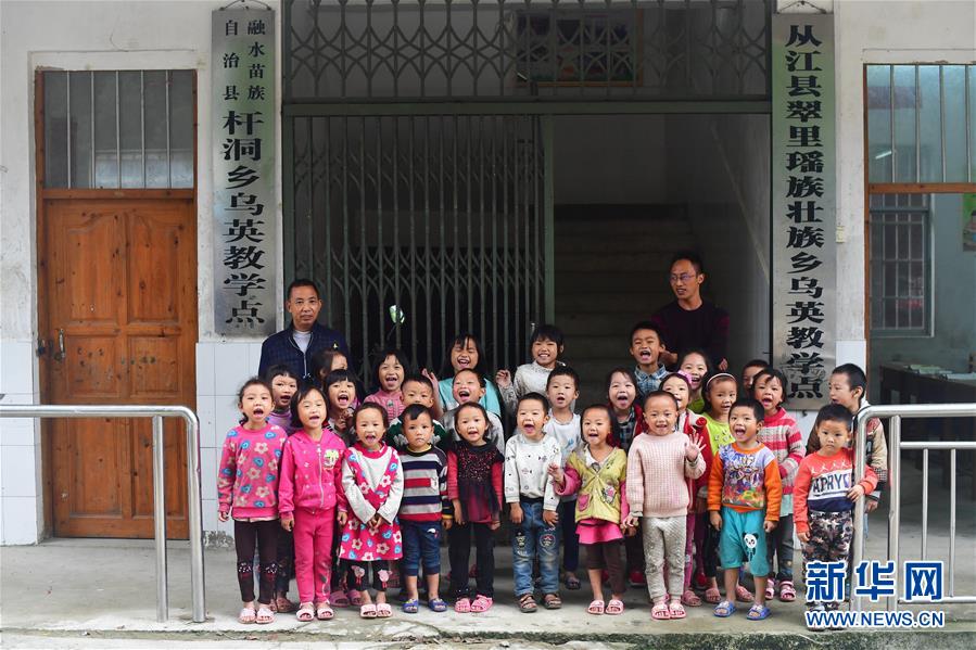 烏英教學(xué)點(diǎn)“一校跨兩省區(qū)”,目前有廣西籍學(xué)生18名,貴州籍學(xué)生9名,廣西貴州籍老師各1名。 烏英苗寨位于黔桂交界的大苗山深處,共有140戶,其中100戶屬?gòu)V西柳州市融水苗族自治縣桿洞鄉(xiāng)黨鳩村,40戶屬貴州省從江縣翠里瑤族壯族鄉(xiāng)南岑村。由于地處偏遠(yuǎn),山多地少,經(jīng)濟(jì)發(fā)展緩慢,目前整個(gè)苗寨還有76戶是貧困戶。 面對(duì)艱巨的脫貧任務(wù),當(dāng)?shù)攸h委政府在努力改善烏英苗寨公共基礎(chǔ)設(shè)施的同時(shí),因地制宜,帶動(dòng)群眾積極發(fā)展特色產(chǎn)業(yè)。從2017年11月至今的一年多時(shí)間,這里發(fā)生了很大改變:10戶村民新建了木樓,120多戶完成“三改”(改廁改廚改圈),1名貧困考生考上大學(xué),1戶購(gòu)買(mǎi)新汽車,4對(duì)新人舉行了婚禮,寬帶網(wǎng)絡(luò)開(kāi)始進(jìn)入貧困戶家庭,苗寨修建了新的辦公大樓和戲臺(tái),安裝了4盞太陽(yáng)能路燈,購(gòu)買(mǎi)了40多個(gè)新蘆笙,水果種植專業(yè)合作社2018年種植的百香果也開(kāi)始有所收獲,18戶貧困戶進(jìn)入脫貧公示階段…… 烏英苗寨600多名黔桂苗族群眾,正在用勤勞的手,拔窮根摘窮帽,一起創(chuàng)造美好的明天。