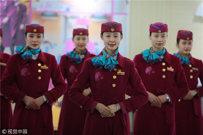 2018年12月27日,四川成都,為備戰(zhàn)即將開(kāi)通的成雅鐵路,中國(guó)鐵路成都局集團(tuán)有限公司成都客運(yùn)段動(dòng)車二隊(duì)對(duì)成雅動(dòng)車的乘務(wù)人員進(jìn)行理論、形體、服務(wù)禮儀等內(nèi)容的培訓(xùn)。