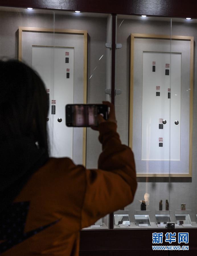 12月29日,觀眾用手機(jī)拍攝展出的金石篆刻印章。 當(dāng)日,“中國竹扇之鄉(xiāng)”——浙江省安吉縣鄣吳鎮(zhèn)舉辦傳統(tǒng)文化迎新年活動。舉辦包括扇文化博覽會、扇面藝術(shù)展、制扇工藝展示及金石、拓印文化展示等活動,弘揚中華優(yōu)秀傳統(tǒng)文化。 自上世紀(jì)七十年代以來,鄣吳鎮(zhèn)開始發(fā)展制扇產(chǎn)業(yè),現(xiàn)在該鎮(zhèn)有各類制扇企業(yè)80余家,制扇行業(yè)從業(yè)人員2000多人,年產(chǎn)值達(dá)2億多元。 新華社記者 徐昱攝