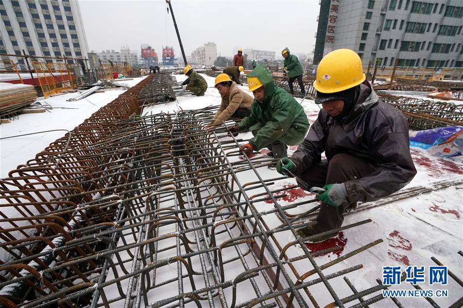 12月30日,南昌市洪都大道快速化改造工程項(xiàng)目工地上,中鐵四局五公司職工冒雪作業(yè)。新華社記者宋振平攝