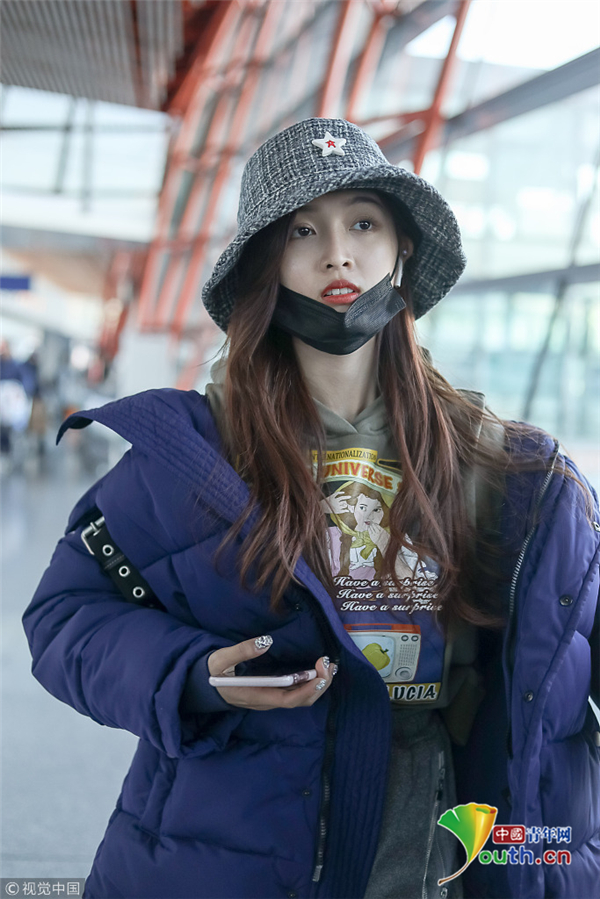 1月1日,北京,吳宣儀現(xiàn)身機(jī)場。外帶著漁夫帽的她嘟嘴顯可愛,裹著厚重羽絨服認(rèn)真過冬超保暖。
