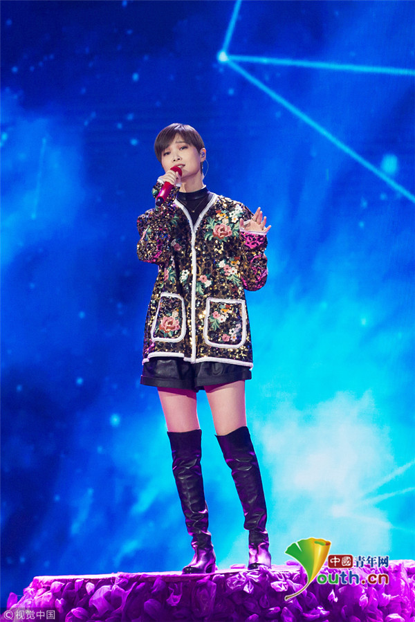 2019年1月8日晚,北京,李宇春亮相第17屆電影頻道電影百合獎頒獎典禮,并演唱了一首《你是如此難以忘記》。當晚的她一身閃花衣搭配黑色短褲長靴,一雙長腿吸睛十足,盡顯女人柔美和帥氣的雙重魅力,她手放胸前鞠躬向觀眾致意,謙遜有禮。