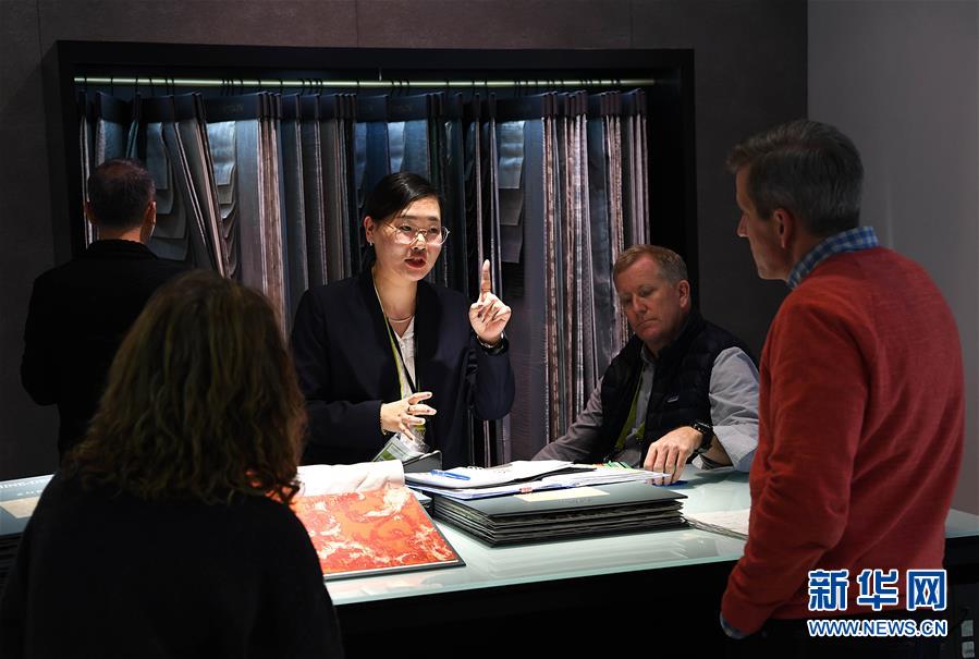 1月8日,在德國法蘭克福家紡展上,參觀者與一家來自中國的展商洽談。  新華社記者 逯陽 攝