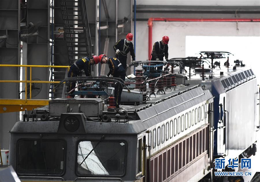 1月16日,重慶機(jī)務(wù)段職工在對(duì)機(jī)車車頂設(shè)備進(jìn)行檢修。 臨近春運(yùn),為確保春運(yùn)旅客和貨物列車運(yùn)輸安全,中國(guó)鐵路成都局集團(tuán)有限公司重慶機(jī)務(wù)段對(duì)全段機(jī)車進(jìn)行專項(xiàng)檢查、整修,為即將到來(lái)的春運(yùn)做準(zhǔn)備。 新華社記者王全超攝