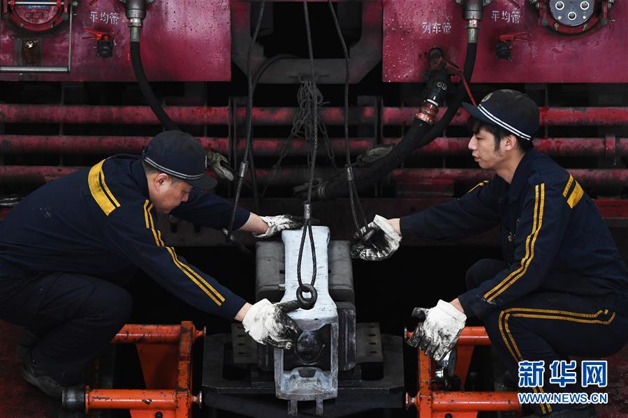 1月16日,重慶機(jī)務(wù)段職工在對(duì)機(jī)車車鉤進(jìn)行檢修。 臨近春運(yùn),為確保春運(yùn)旅客和貨物列車運(yùn)輸安全,中國(guó)鐵路成都局集團(tuán)有限公司重慶機(jī)務(wù)段對(duì)全段機(jī)車進(jìn)行專項(xiàng)檢查、整修,為即將到來(lái)的春運(yùn)做準(zhǔn)備。 新華社記者王全超攝