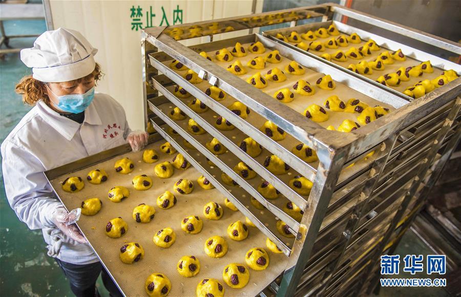 1月25日,在河北棗強(qiáng)一家食品公司,工人將新鮮花糕出爐。 春節(jié)臨近,河北省棗強(qiáng)縣面食加工廠的面點(diǎn)師傅們忙著趕制花糕、花饃等傳統(tǒng)面食,以供應(yīng)節(jié)日市場(chǎng)。當(dāng)?shù)赜羞^年蒸花糕、做花饃的習(xí)俗,寓意步步登高,生活一年比一年好。 新華社記者 李曉果攝