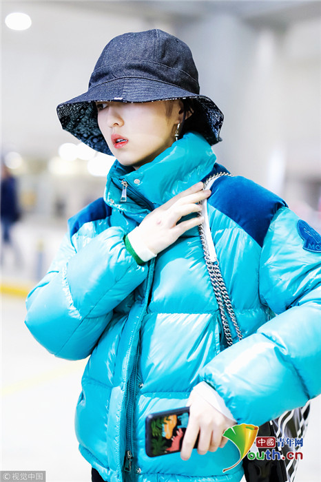 2019年1月31日,上海,張子楓現(xiàn)身機(jī)場(chǎng)。她身穿藍(lán)色羽絨服,戴著大檐帽也難擋好氣色,雪膚紅唇妝容精致展現(xiàn)女人味。