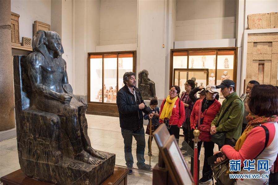2月9日,在埃及首都開羅,中國游客跟隨埃及導(dǎo)游參觀埃及博物館。 雖然中國人過春節(jié)的傳統(tǒng)是返鄉(xiāng)回家,但越來越多的國人選擇在春節(jié)期間走出國門,利用春節(jié)假期外出旅游。 新華社記者 孟濤 攝