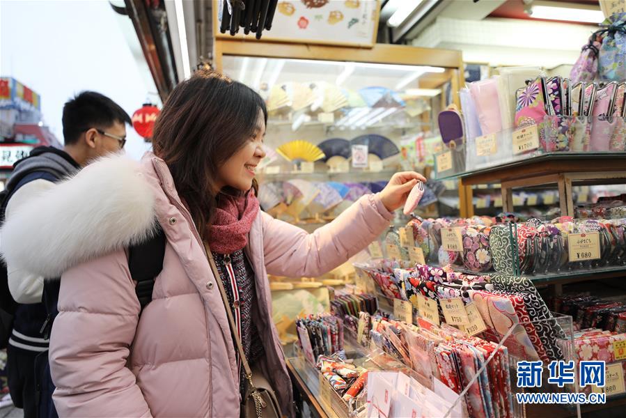 2月8日,在日本東京,中國游客在淺草的商店街選購商品。 雖然中國人過春節(jié)的傳統(tǒng)是返鄉(xiāng)回家,但越來越多的國人選擇在春節(jié)期間走出國門,利用春節(jié)假期外出旅游。 新華社記者 杜瀟逸 攝