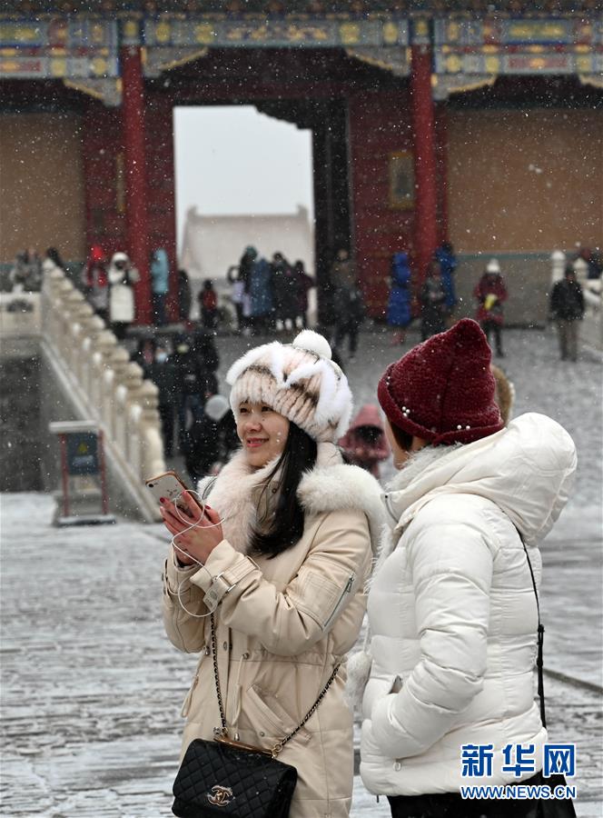 2月14日,游客在北京故宮游覽。 當(dāng)日,北京降雪,大批游人來(lái)到故宮游覽賞雪。 新華社記者 金良快 攝