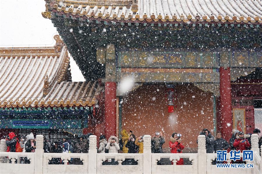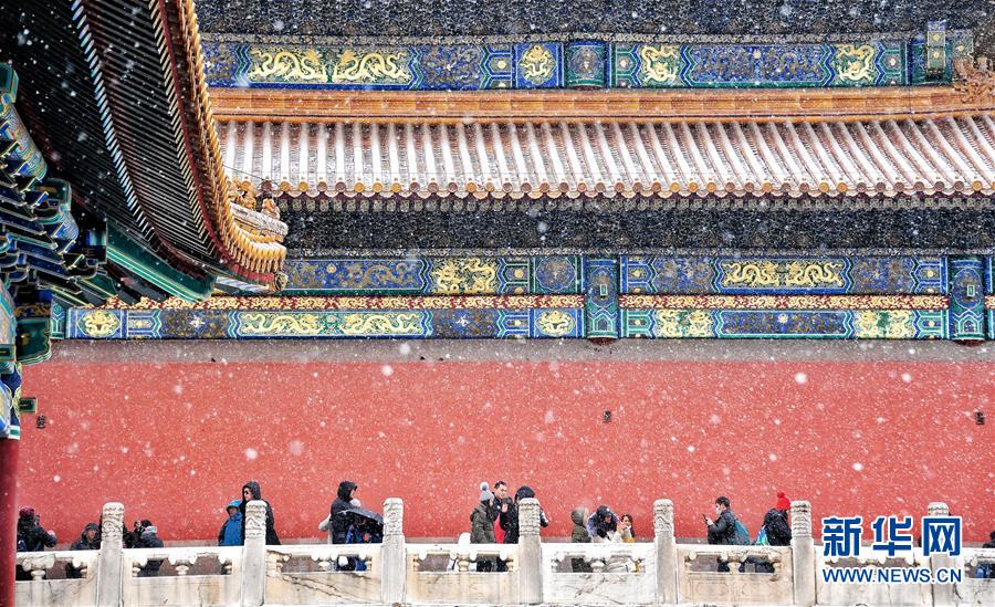 2月14日,游客在雪中游覽北京故宮。 當(dāng)日,北京降雪,大批游人來(lái)到故宮游覽賞雪。 新華社記者 金良快 攝