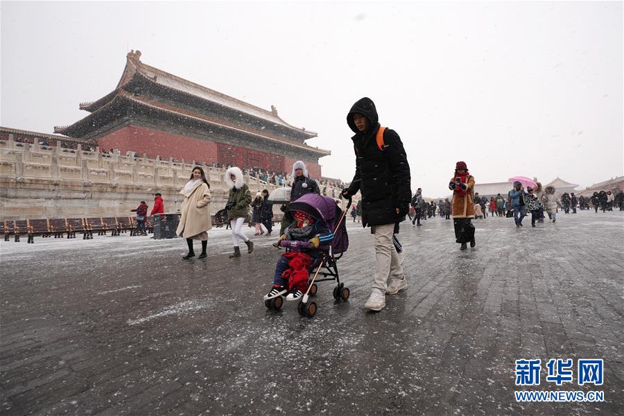 2月14日,游客在雪中游覽北京故宮。 當(dāng)日,北京降雪,大批游人來(lái)到故宮游覽賞雪。 新華社記者 李欣 攝