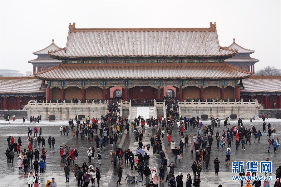 2月14日,游客在雪中游覽北京故宮。 當(dāng)日,北京降雪,大批游人來(lái)到故宮游覽賞雪。 新華社記者 鞠煥宗 攝