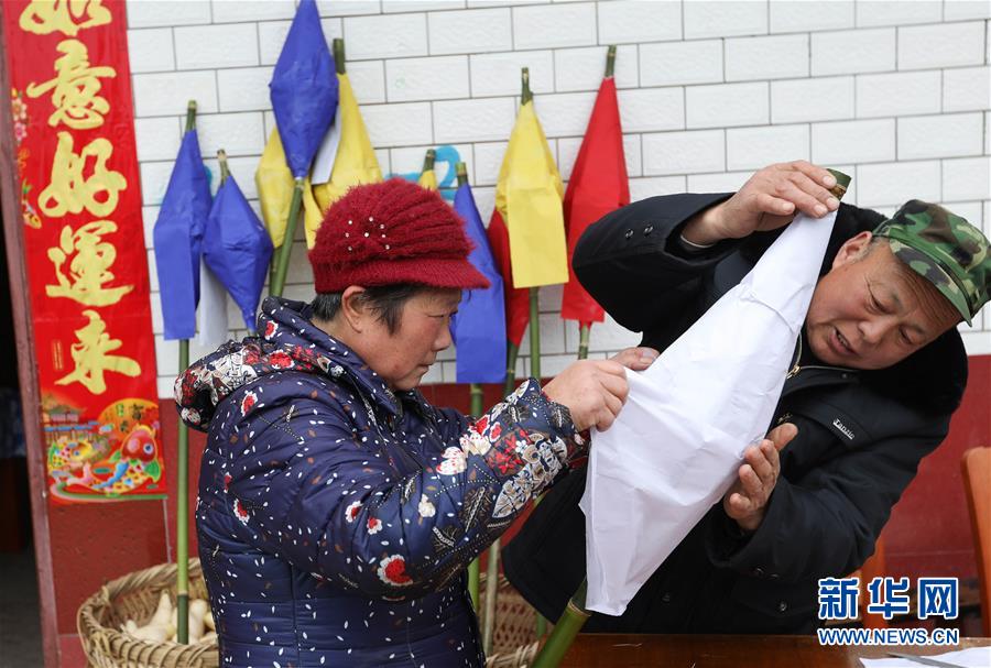 2月18日,在四川省南充市嘉陵區(qū)金寶鎮(zhèn)和祥社區(qū),65歲的李樹會(右)和老伴制作“蠐蟆燈”。 當日是農(nóng)歷正月十四,夜幕降臨后,川渝等地數(shù)萬名群眾在四川省南充市嘉陵區(qū)金寶鎮(zhèn)匯聚,點亮“蠐蟆燈”,敲著鑼鼓唱著歌謠,將“蠐蟆”送到幾公里外的田邊或者河邊燒掉,祈福健康平安。星星點點的燈光在鄉(xiāng)間小路閃爍移動,場面壯觀熱烈。 “送蠐蟆”祈福這一習俗源于清朝,歷經(jīng)演變成為川東北地區(qū)一個古老而神秘的地方民俗節(jié)日。 新華社記者 江宏景 攝