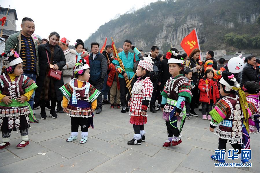 2月24日,在貴州省凱里市舟溪鎮(zhèn),苗族小姑娘身著盛裝跳蘆笙舞。 當(dāng)日,在貴州省黔東南苗族侗族自治州凱里市舟溪鎮(zhèn),來(lái)自各地的苗族群眾身著節(jié)日盛裝,歡聚在古老的“甘囊香”蘆笙堂,男子吹奏起蘆笙,姑娘和孩子們跳起蘆笙舞,歡度新春,祈求風(fēng)調(diào)雨順、五谷豐登,青年男女也借此良日尋覓意中人。 “甘囊香”是苗語(yǔ)音譯,意思為“河流的下游,神仙匯聚的地方”?!案誓蚁恪碧J笙會(huì)是貴州規(guī)模最大、最古樸的苗族蘆笙會(huì)之一。 新華社記者楊文斌攝