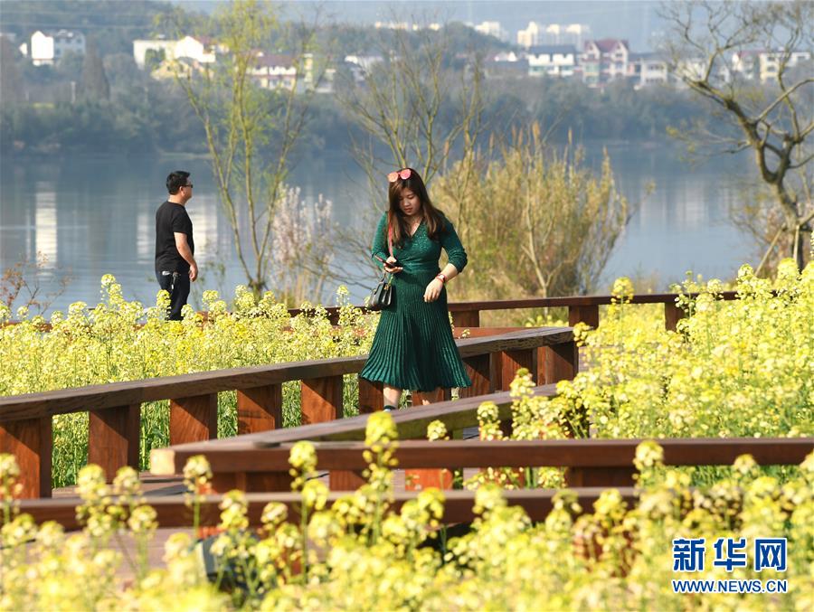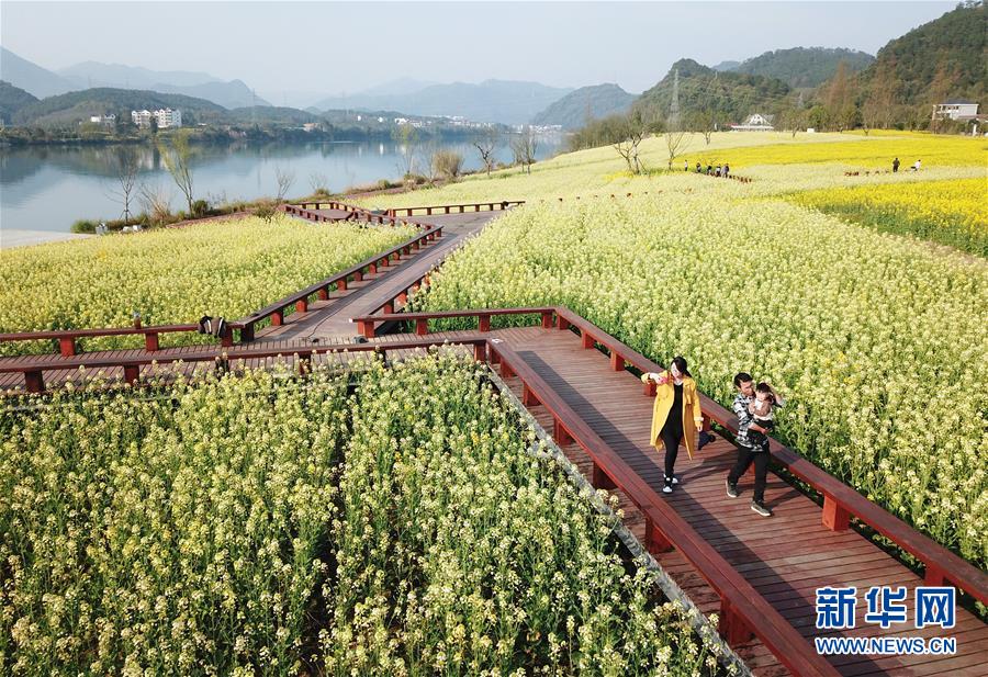 3月19日,游人在下涯鎮(zhèn)油菜花海中游玩。近日,浙江省建德市下涯鎮(zhèn)油菜花盛開(kāi),吸引不少游客前來(lái)踏春。 新華社記者翁忻旸攝