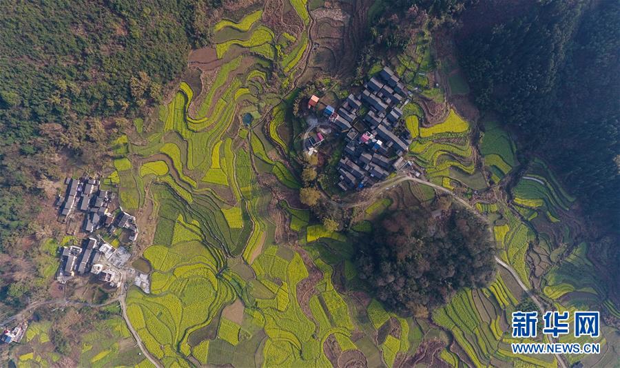 廣西融安縣東起鄉(xiāng)長(zhǎng)豐村的田園春色(3月10日無(wú)人機(jī)拍攝)。 近日,隨著氣溫持續(xù)回升,廣西融安縣境內(nèi)的油菜花開放,春意盎然。 新華社記者 黃孝邦 攝