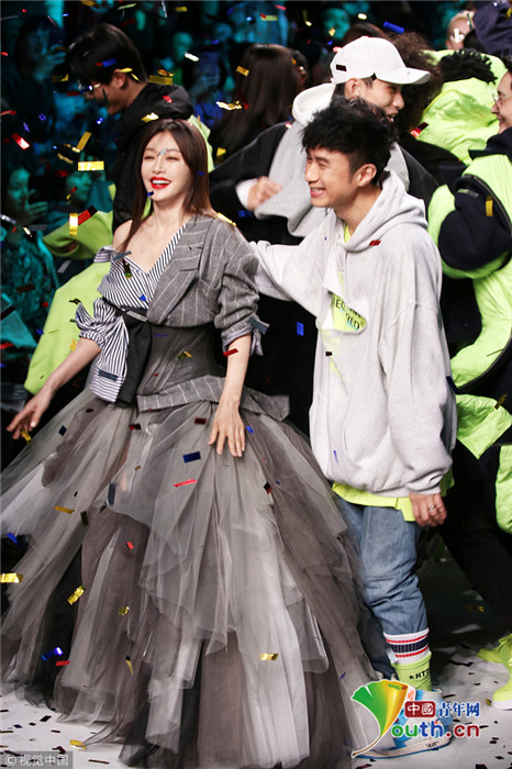 2019年3月31日,上海,2019上海秋冬時(shí)裝周,秦嵐助陣古巨基自創(chuàng)品牌大秀。她穿西裝紗紗裙笑容滿面可鹽可甜,斜肩小西裝正好能露出天鵝頸的線條,性感又不失知性?!拔灏⒏纭惫啪藁鶆t穿著隨性,與“知畫”牽手走秀,引起滿滿“回憶殺”。