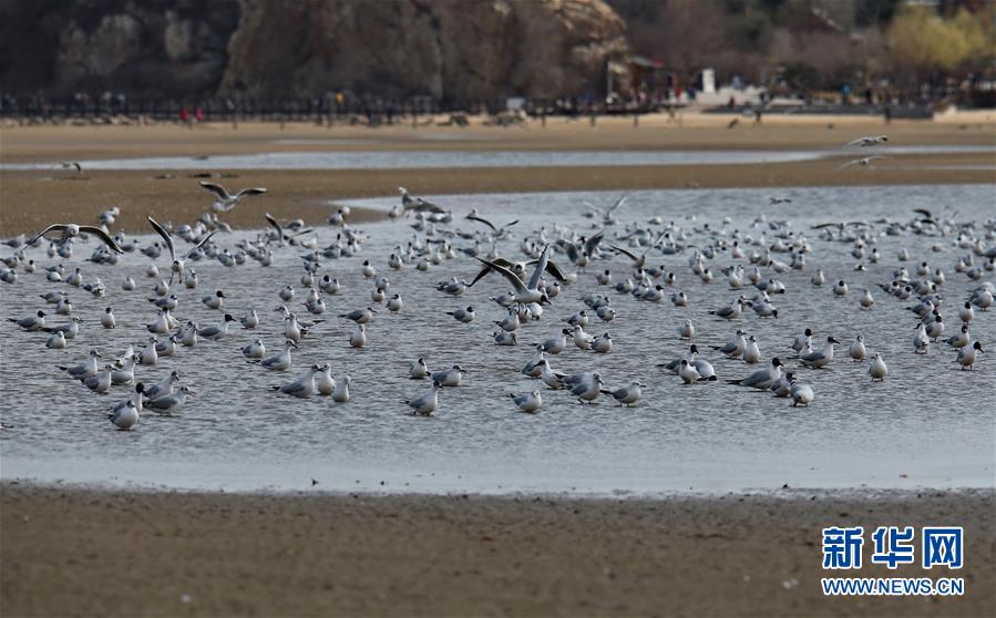 4月4日,一群候鳥在秦皇島市沿海濕地休憩。近日,大批候鳥飛抵河北省秦皇島市沿海濕地,出現(xiàn)“萬鳥臨?!逼嬗^。秦皇島沿海濕地鳥類食物豐富,每年春、秋兩季,大批候鳥遷徙經(jīng)過這里。新華社記者 楊世堯 攝