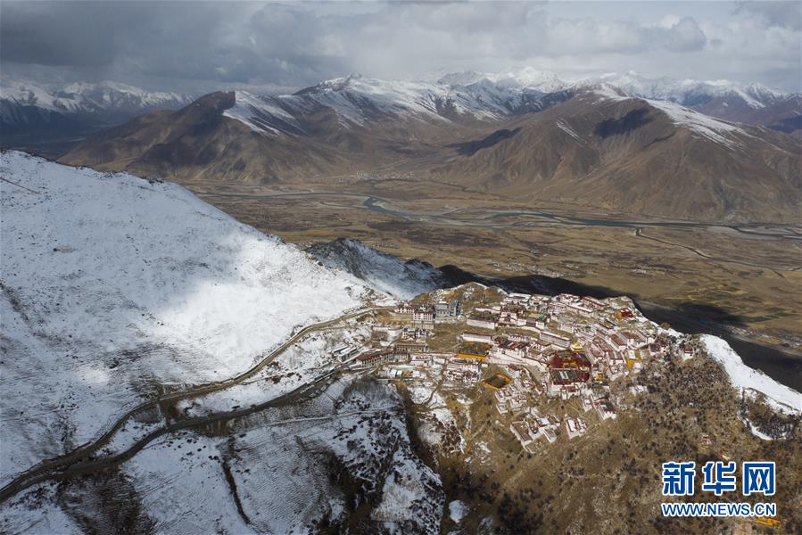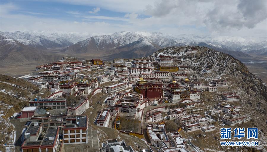 雪后的甘丹寺(4月8日無(wú)人機(jī)拍攝)。新華社記者普布扎西攝