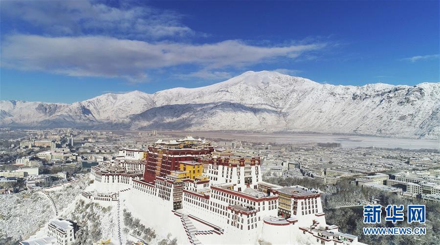 12月19日無(wú)人機(jī)拍攝的雪后的布達(dá)拉宮。 12月18日,西藏拉薩市迎來(lái)今年入冬以來(lái)的首場(chǎng)降雪。19日清晨,拉薩雪后初霽,處處銀裝素裹,盡顯雪域高原之美。 新華社記者普布扎西攝