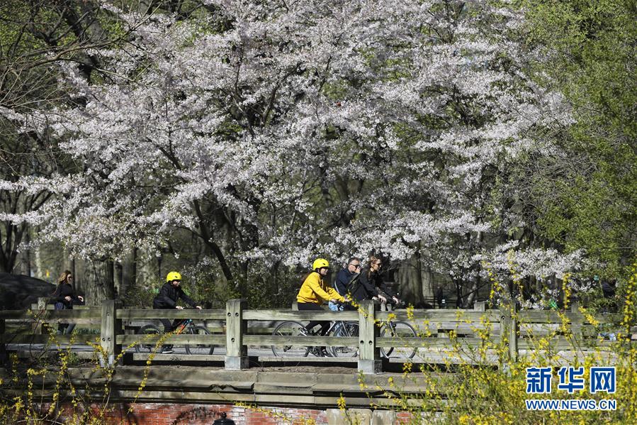 4月16日,人們在美國紐約中央公園騎行。 新華社記者 王迎 攝