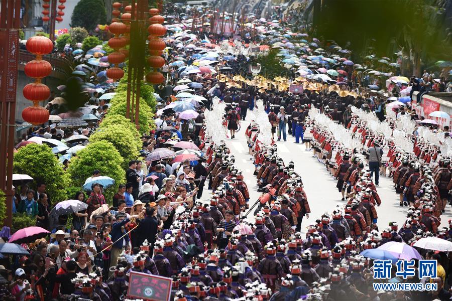 4月18日,臺江縣苗族群眾參加盛裝游演活動。 當日,貴州省黔東南苗族侗族自治州臺江縣迎來一年一度的苗族姊妹節(jié)。節(jié)日期間將舉行苗族盛裝游演、千人長桌宴、千人游方體驗、苗族手工創(chuàng)意大賽等一系列活動。 姊妹節(jié)是臺江縣苗族同胞的傳統(tǒng)節(jié)日,2006年被列入第一批國家級非物質文化遺產(chǎn)名錄。 新華社記者 楊文斌 攝