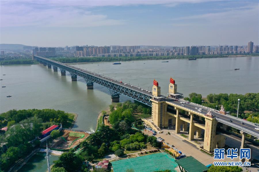 這是4月18日無人機(jī)拍攝的南京長江大橋。 新華社記者 李博 攝