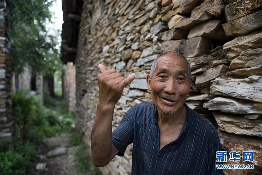 63歲的劉長鎖老人生于斯長于斯,整個村落僅他一人(8月7日攝)。他的孩子2014年搬進(jìn)山下的新居。 新華社記者陶明攝