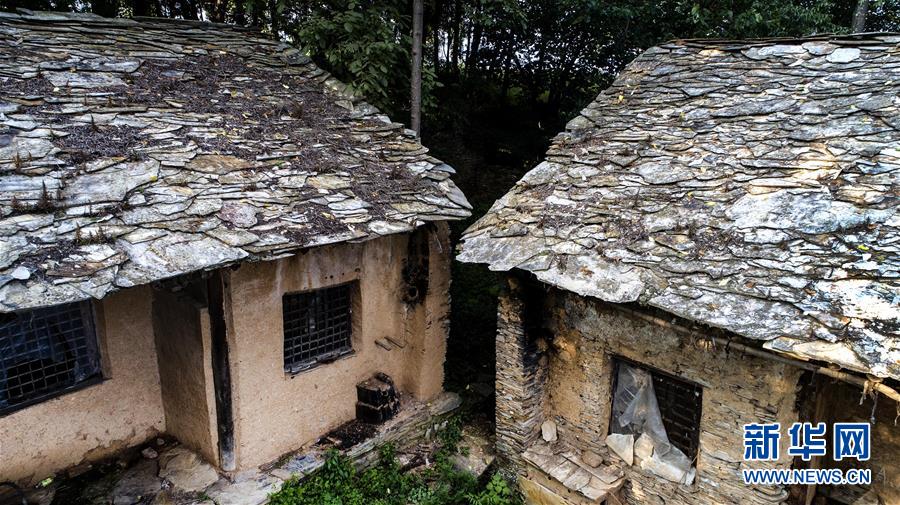 掩映在大山之中的石板房古村落,人去房空(8月7日無人機(jī)拍攝)。 新華社記者陶明攝
