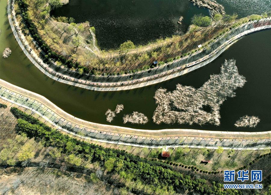 這是位于河南省平頂山市由采煤塌陷區(qū)修復改造的白鷺洲國家城市濕地公園一景(3月12日無人機拍攝)。 新華社記者 李安 攝