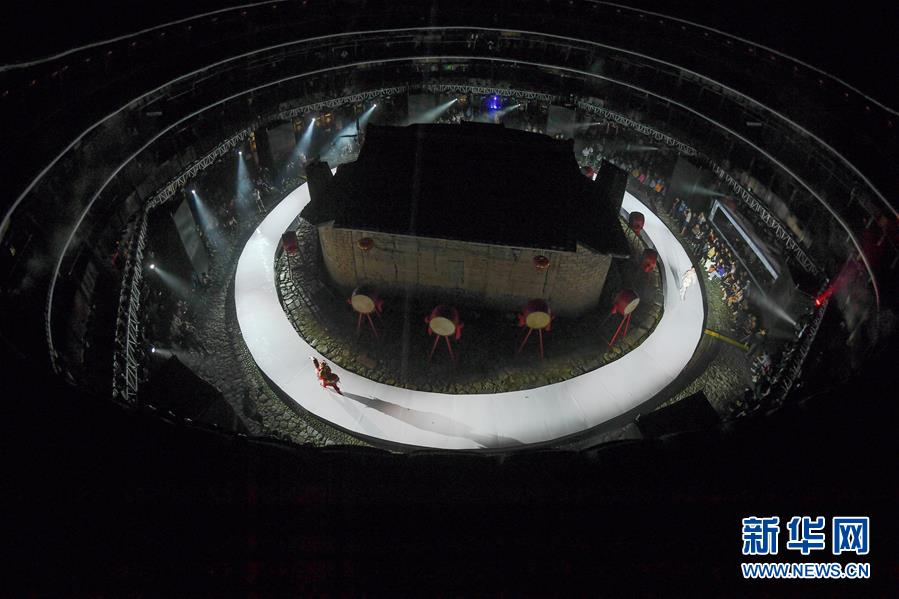 4月27日,模特在位于福建省南靖縣的土樓裕昌樓展示服飾。 當(dāng)日,土樓光語國際時(shí)尚大秀在福建省南靖縣的土樓裕昌樓內(nèi)舉行。這場(chǎng)融匯文化、時(shí)尚與旅游元素的大秀,通過傳統(tǒng)與時(shí)尚的有機(jī)融合,展現(xiàn)南靖土樓及文化的魅力和風(fēng)采。 新華社記者 宋為偉 攝