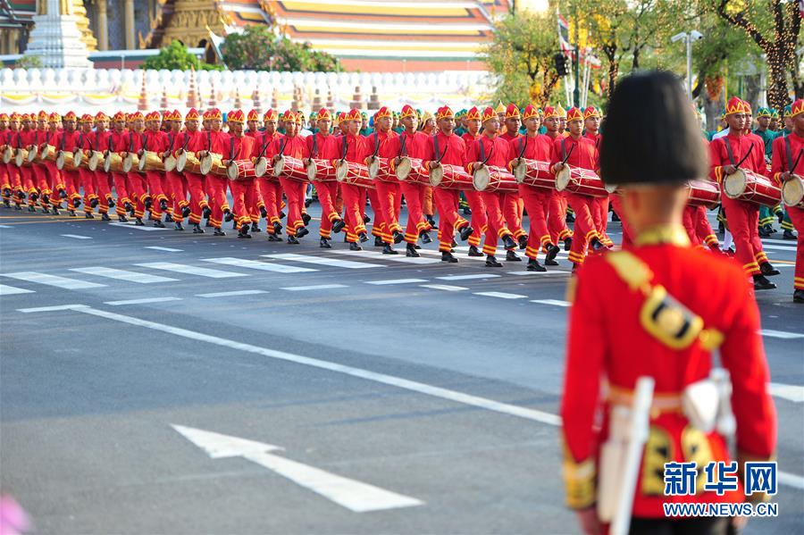 5月5日,儀仗隊在曼谷大王宮附近舉行的泰國國王加冕典禮巡游上列隊前進。 新華社發(fā)(拉亨攝)