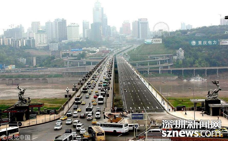 【跨度最大的梁橋——重慶石板坡長(zhǎng)江復(fù)線大橋】重慶石板坡長(zhǎng)江大橋復(fù)線橋跨徑330米,于2003年12月正式動(dòng)工,2006年8月28日竣工通車,全長(zhǎng)1103.5米,寬19米,為單向四車道,設(shè)計(jì)日通行能力8萬(wàn)輛。