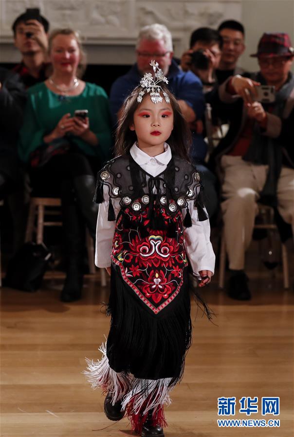 5月8日,一名兒童模特在英國倫敦走秀。 由浙江省文化和旅游廳舉辦的浙江傳統(tǒng)工藝創(chuàng)新展8日在倫敦開幕。為期4天的展覽是第五屆倫敦手工藝周的重要活動(dòng)之一。 新華社記者 韓巖 攝