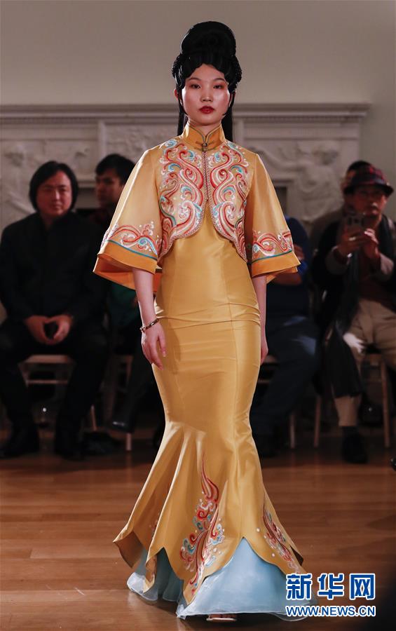 5月8日,一名模特在英國倫敦走秀。 由浙江省文化和旅游廳舉辦的浙江傳統(tǒng)工藝創(chuàng)新展8日在倫敦開幕。為期4天的展覽是第五屆倫敦手工藝周的重要活動之一。 新華社記者 韓巖 攝