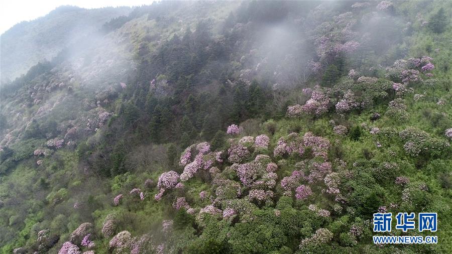 神農(nóng)架神農(nóng)頂景區(qū)盛開的高山杜鵑(5月13日無人機(jī)拍攝)。 新華社記者 杜華舉 攝