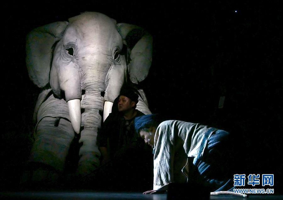 5月15日在上海美琪大戲院拍攝的新版大型人偶舞臺劇《最后一頭戰(zhàn)象》劇照。 當日,作為第12屆中國藝術節(jié)的參演劇目,大型人偶舞臺劇《最后一頭戰(zhàn)象》在經(jīng)過4次硬件技術升級和故事修改后亮相上海美琪大戲院。 新華社記者 任瓏 攝