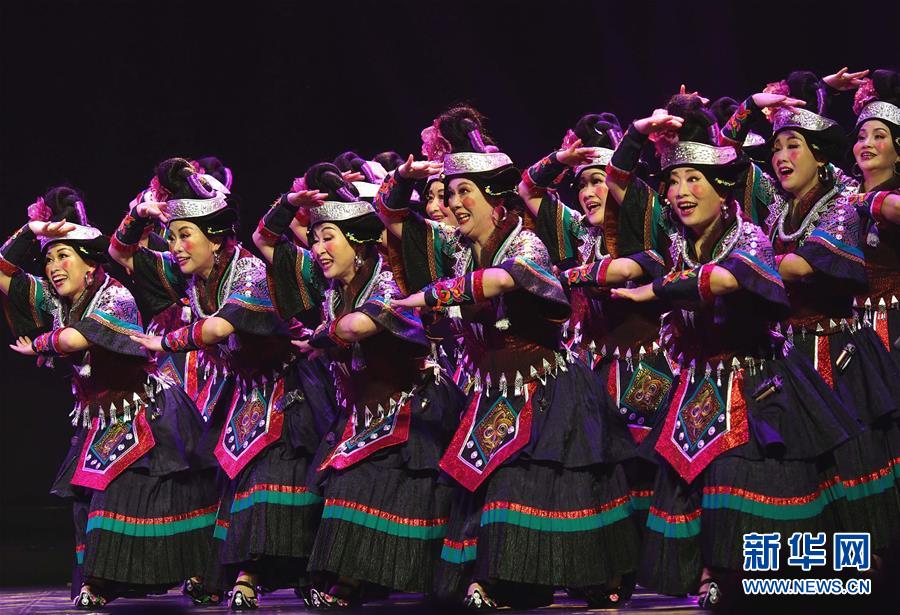 5月16日,在第十八屆群星獎(jiǎng)決賽舞蹈類作品比賽中,演員在表演《苗家阿婆笑哈哈》。 當(dāng)日,作為第十二屆中國(guó)藝術(shù)節(jié)的重要內(nèi)容,第十八屆群星獎(jiǎng)決賽在上海東方藝術(shù)中心啟動(dòng)。84個(gè)入圍決賽作品將按照舞蹈、音樂(lè)、戲劇、曲藝4個(gè)門類進(jìn)行7場(chǎng)比賽,最終評(píng)出20個(gè)獲獎(jiǎng)作品。 新華社記者 任瓏 攝