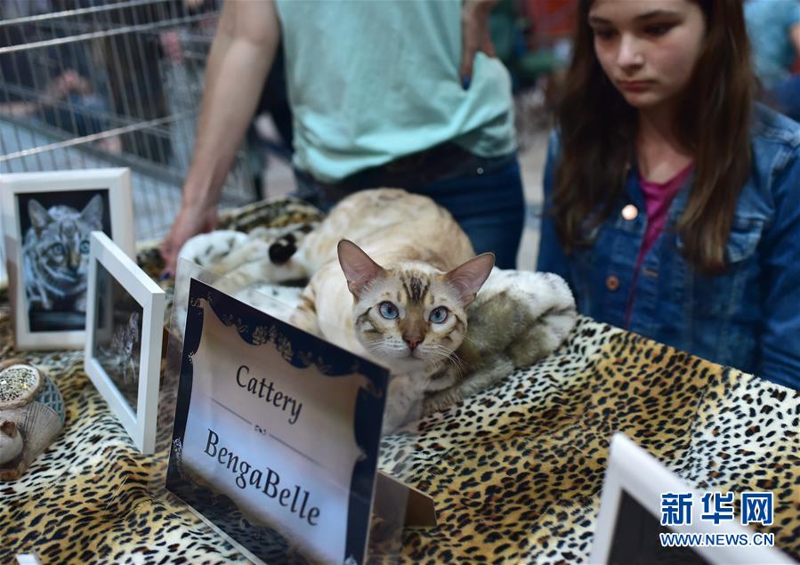 這是5月19日在德國多特蒙德舉行的寵物展上拍攝的一只孟加拉貓。 為期三天的德國多特蒙德“狗和貓”寵物展19日落幕。寵物展期間,人們帶著自己的“萌寵”來到會(huì)場(chǎng),參與寵物跳水、舞蹈、選美等趣味比賽,并與其他寵物愛好者及展商交流互動(dòng)。 新華社記者逯陽攝